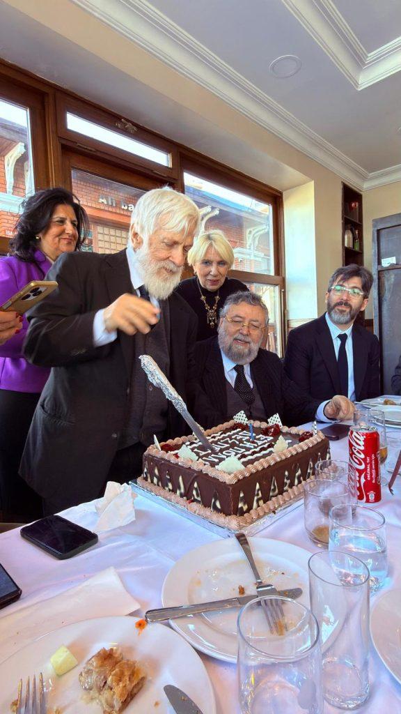 Ο Μητροπολίτης Φιλαδελφείας Μελίτων κόβει την τούρτα που προσέφερε η Μητρόπολη Πριγκηποννήσων για τα ονομαστήρια του. Διακρίνονται οι Μητροπολίτες Πριγκηποννήσων Δημήτριος και Σαράντα Εκκλησιών Ανδρέας.