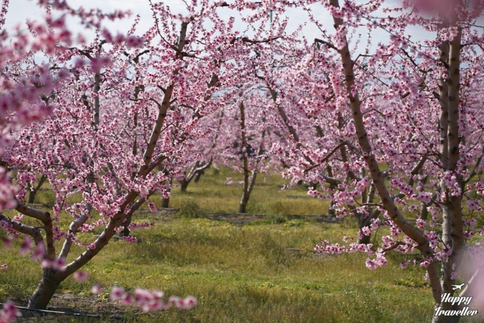 Για λίγες μόνο εβδομάδες τον χρόνο, χιλιάδες δέντρα ανθίζουν ταυτόχρονα και γεμίζουν τον κάμπο με ροζ και λευκές αποχρώσεις.