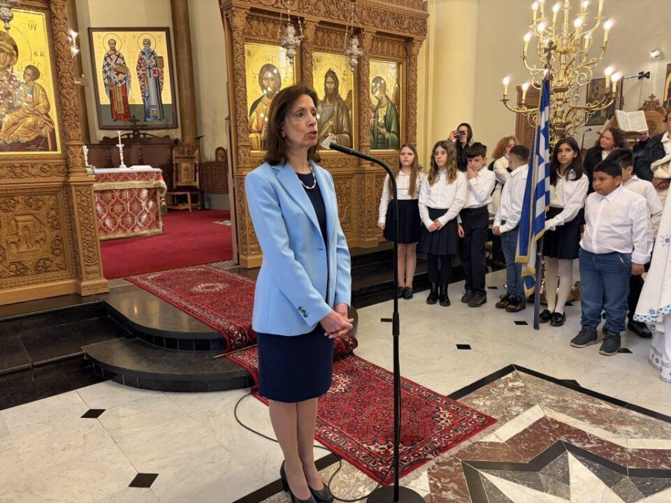 Η πρέσβειρα της Ελλάδος στο Βέλγιο Σοφία Γραμματά εκφώνησε τον πανηγυρικό της ημέρας στη δοξολογία για την εθνική γιορτή της 25ης Μαρτίου.