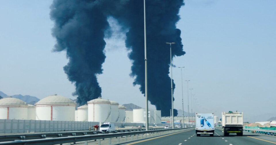 The UAE’s Fujairah port was reportedly attacked by Iranian drones, causing a large fire at the port located outside the Strait of Hormuz. According to Bloomberg, oil loading operations at the port were halted following the attack. pic.twitter.com/IAtZg4Cvwv