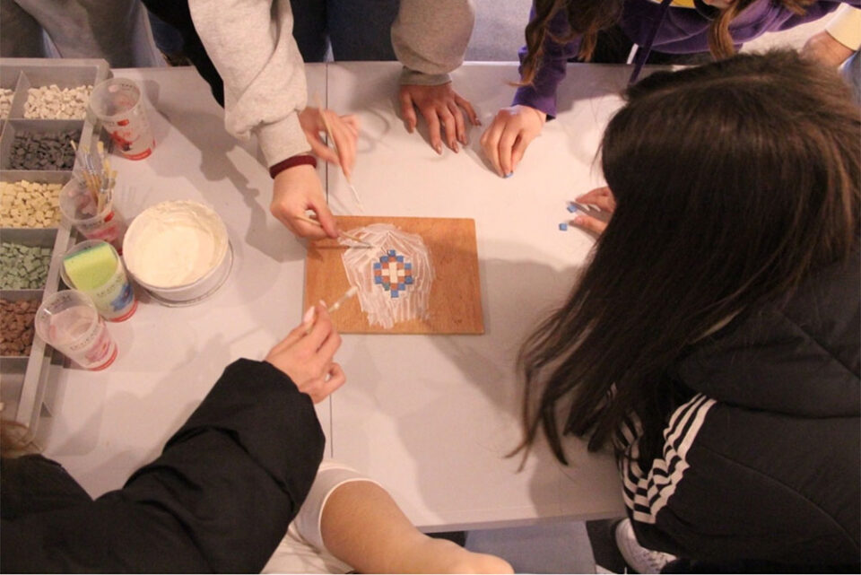 Ο βιωματικός χαρακτήρας της δράσης επέτρεψε στους συμμετέχοντες να παρακολουθήσουν ειδικό εποπτικό υλικό να ευαισθητοποιηθούν στις αρχές συντήρησης και διάσωσης της θρησκευτικής μας κληρονομιάς να λειτουργήσουν ως μικροί καλλιτέχνες, δημιουργώντας τα δικά τους ψηφιδωτά, εμπνευσμένα από τα μοναδικά μοτίβα του αρχαιολογικού χώρου της Νικόπολης.