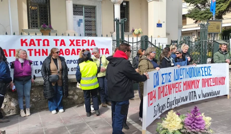 Στην ματαίωση της συνεδρίασης της Δημοτικής Επιτροπής του Δήμου Ιωαννιτών οδήγησε η κινητοποίηση που είχαν προαναγγείλει οι εργαζόμενοι. Στο επίκεντρο της διαμαρτυρίας βρίσκεται η απόφαση της Δημοτικής Αρχής να προχωρήσει στην εκχώρηση διευρυμένων υπηρεσιών καθαριότητας σε ιδιώτη για την επόμενη τριετία.