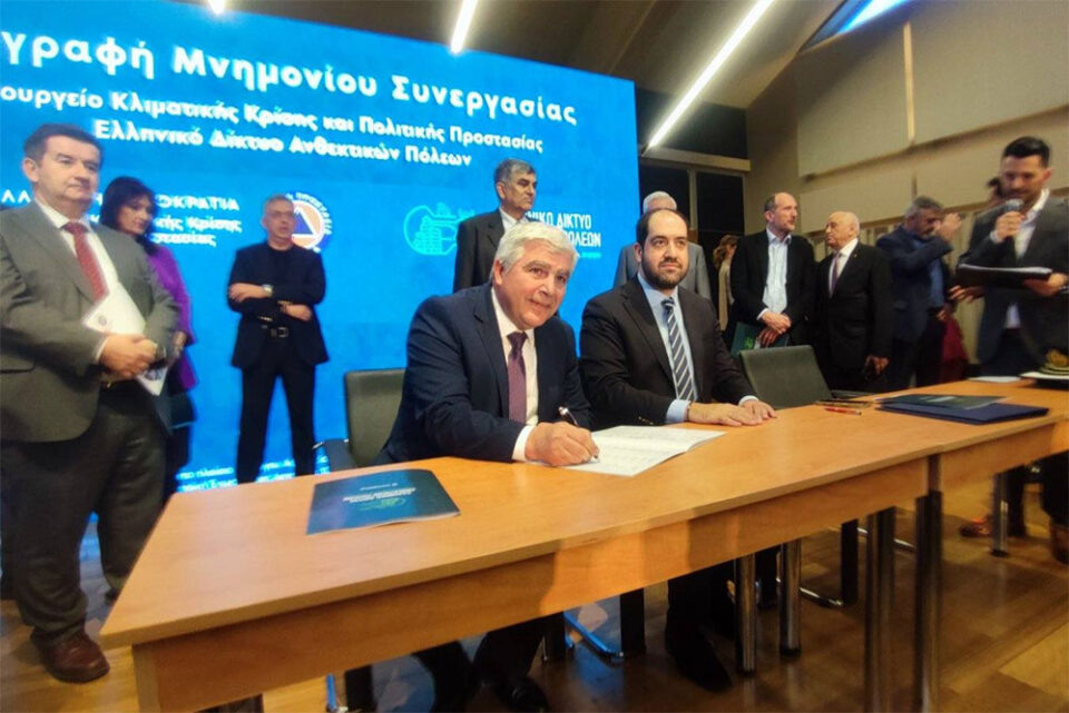 Η υπογραφή έγινε παρουσία του Υπουργού, Γιάννη Κεφαλογιάννη, και του Ελληνικού Δικτύου Ανθεκτικών Πόλεων.