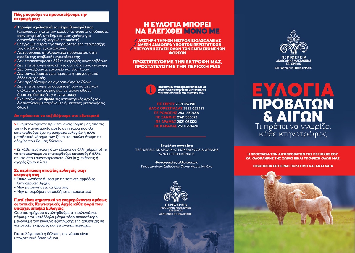 Παράλληλα, για την ενημέρωση των κτηνοτρόφων, η Περιφέρεια Ανατολικής Μακεδονίας και Θράκης προγραμματίζει στοχευμένες συναντήσεις σε επιλεγμένες περιοχές ενδιαφέροντος, με σκοπό τη διανομή ενημερωτικού υλικού, την πραγματοποίηση παρουσιάσεων από επιστήμονες και τη διεξαγωγή ανοιχτού διαλόγου με τους συμμετέχοντες.