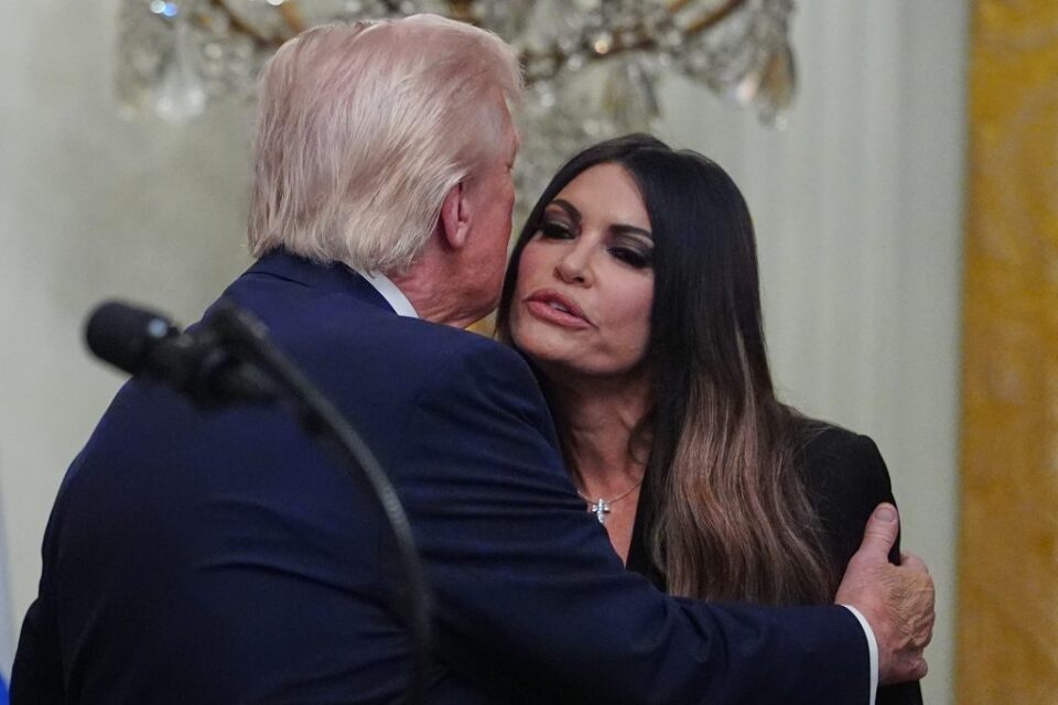 Ο Πρόεδρος Ντόναλντ Τραμπ αγκαλιάζει την πρέσβειρα των ΗΠΑ στην Ελλάδα, Κίμπερλι Γκίλφοϊλ, σε εκδήλωση για τον εορτασμό της Ημέρας της Ελληνικής Ανεξαρτησίας, στην Ανατολική Αίθουσα του Λευκού Οίκου, την Πέμπτη 26 Μαρτίου 2026, στην Ουάσιγκτον. (Φωτογραφία AP/Julia Demaree Nikhinson)
