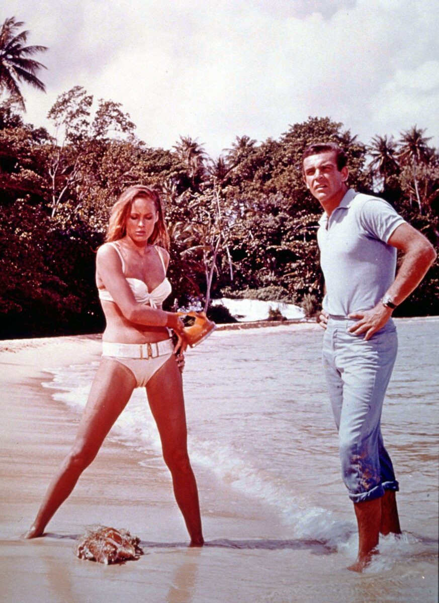 Πρόκειται για την πιο αναγνωρίσιμη σκηνή της πρώτης ταινίας του Τζέιμς Μποντ, «Dr. No» του 1962. Ο άντρας δεν ήταν άλλος από τον διάσημο πράκτορα 007, ενώ η γυναίκα, η Ούρσουλα Άντρες ήταν ο πρώτος μεγάλος έρωτας του Μποντ στη μεγάλη οθόνη.