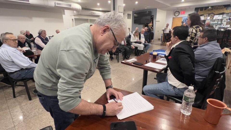 Ο Νίκος Μπάρδης υπογράφει το έντυπο για αίτημα ενιαίας Γενικής Συνέλευσης από τους Συλλόγους. Φωτογραφία: «ΕΘΝΙΚΟΣ ΚΗΡΥΞ»/ΧΡΙΣΤΟΔΟΥΛΟΣ ΑΘΑΝΑΣΑΤΟΣ