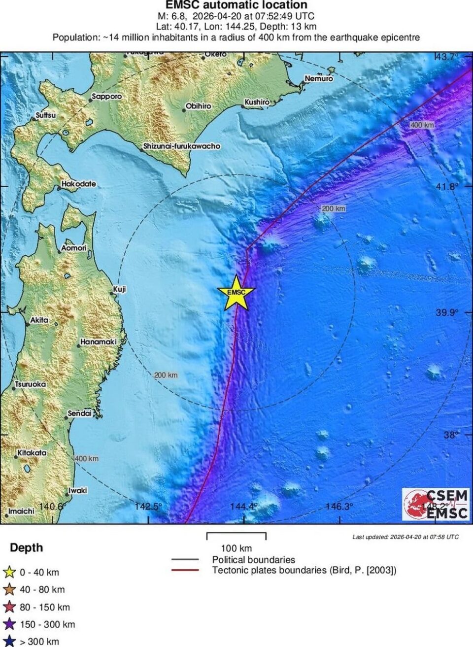 Τσουνάμι ύψους έως και 3 μέτρων αναμένεται να φθάσει στην επαρχία Ιγουάτε του νησιού Χονσού και σε περιοχές του Χοκάιντο, σύμφωνα με την ειδοποίηση που εκδόθηκε.