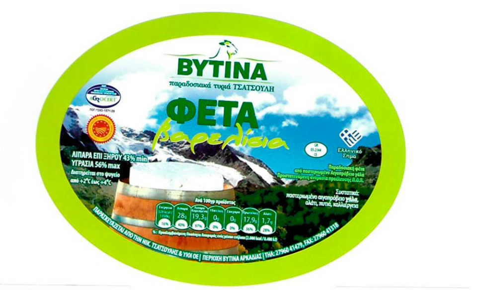 Το προϊόν με την εμπορική ονομασία «ΦΕΤΑ ΒΥΤΙΝΑΣ – Π.Ο.Π. ΒΑΡΕΛΙ», αριθμού παρτίδας 24/07/2027 (ΦΕ-2751), με ημερομηνία ανάλωσης 24/07/2027 και ημερομηνία παραγωγής 24/01/2026, που παράγεται από την εταιρεία «ΝΙΚΟΛΑΟΣ ΤΣΑΤΣΟΥΛΗΣ & ΥΙΟΙ Ο.Ε.».,