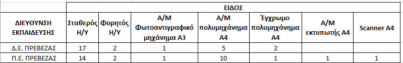 Οι Διευθύνσεις εκπαίδευσης στην Π.Ε. Πρέβεζας εξοπλίζονται με τα παρακάτω μηχανήματα: